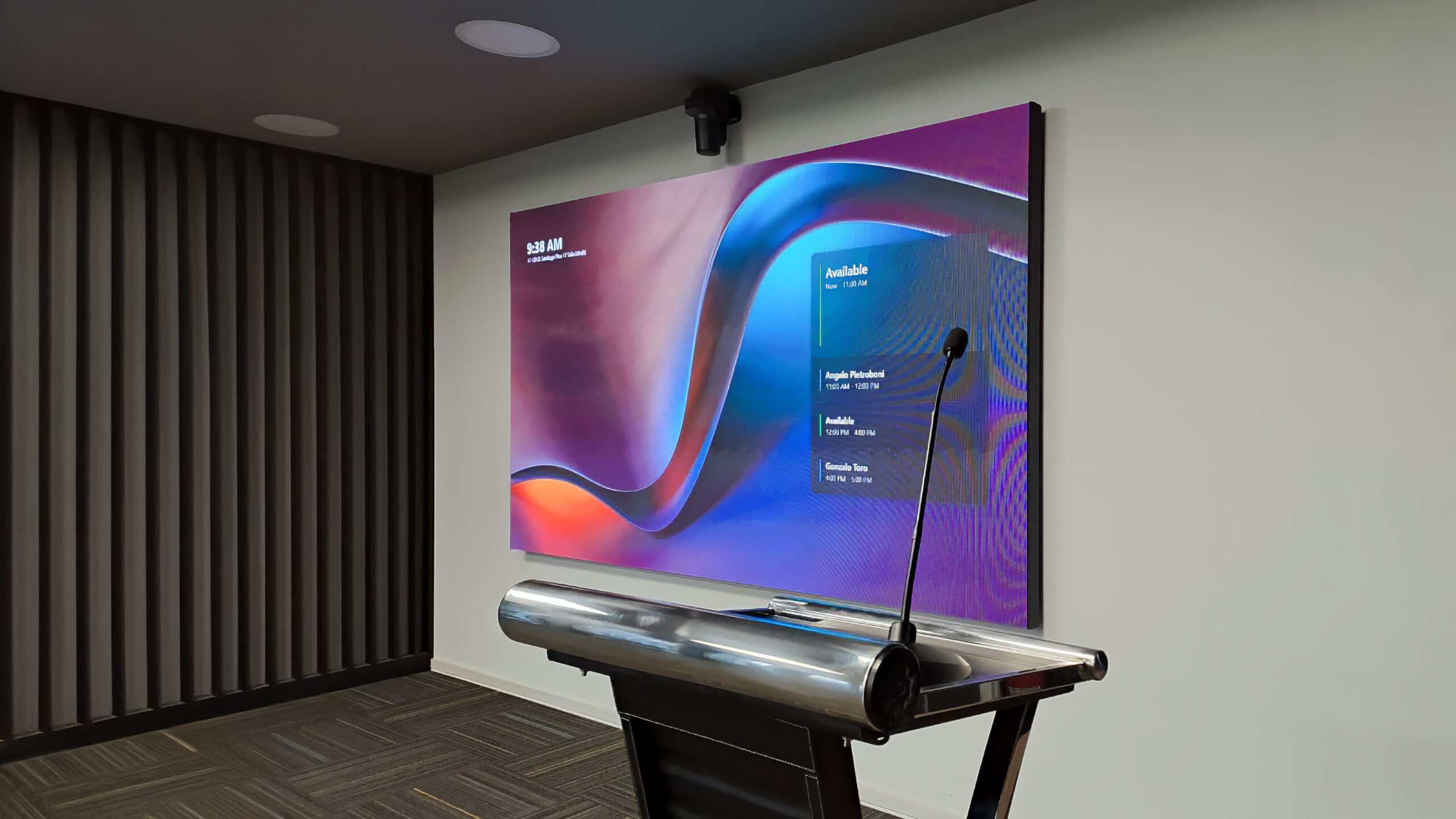 Cámaras. Parlantes. Sistemas de control. Integramos barras de videoconferencia profesionales, cámaras inteligentes, digitalizadores de pizarras y soluciones certificadas y optimizadas para entornos Microsoft Teams Rooms (MTR).